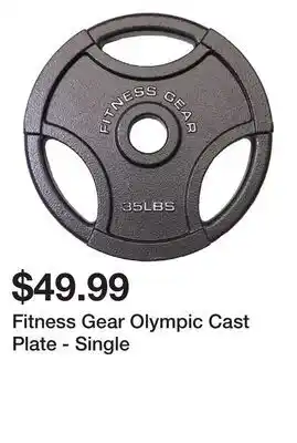The price of Fitness Gear Olympic Cast Plate - Single can be found at the top of the page, together with the dates during which the offer is available. You can also check the price in the current weekly ad or on the Dick's Sporting Goods website. Promotional offers assure you of buying Dick's Sporting Goods products at the lowest price.