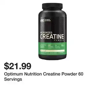 Current Optimum Nutrition Creatine Powder 60 Servings deal at Dick's Sporting Goods from 21-01 until 27-01.