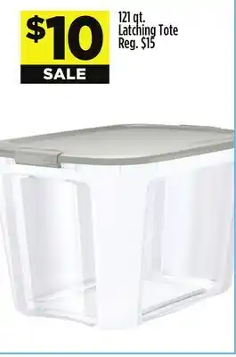 This offer is available in various stores, view all products to get the cheapest 121 qt. Latching Tote. If you'd like to find out whether this product has a bigger discount in another store, check the category 'Grocery'. You may also find these offers interesting: 16.5-Gallon Clear Storage Tote with Latching Lid, HDX 6.5-Qt Tough Storage Tote in Clear with Red Lid & Zinsser 1 Qt.
