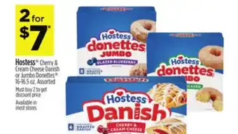 Hostess Cherry & Cream Cheese Danish or Jumbo Donettes Discount at Dollar General