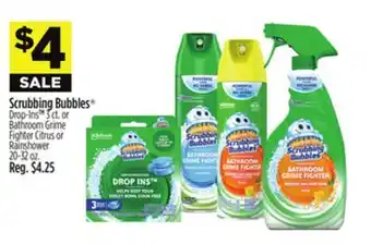 This offer is available in various stores, view all products to get the cheapest Scrubbing Bubbles Drop-Ins 3 ct. or Bathroom Grime Fighter Citrus or Rainshower 20-32 oz. If you'd like to find out whether this product has a bigger discount in another store, check the category 'Grocery'. You may also find these offers interesting: Scrubbing Bubbles Foam Cleaner 32 oz Scrubbing Bubbles Disinfectant 20 oz, Fantastik, Scrubbing Bubbles, Shout or Windex Household Cleaners & Scrubbing Bubbles Easy Clean Trigger or Disinfectant Aerosol.