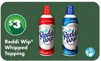 The price of Reddi Wip Whipped Topping can be found at the top of the page, together with the dates during which the offer is available. You can also check the price in the current Dollar Tree weekly ad or on the Dollar Tree website. Promotional offers assure you of buying Dollar Tree products at the lowest price.