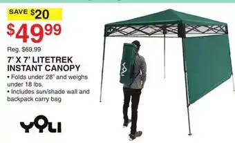 This offer is available in various stores, view all products to get the cheapest 7' X 7' LITETREK INSTANT CANOPY. If you'd like to find out whether this product has a bigger discount in another store, check the category 'Sports'. You may also find these offers interesting: 10' X 10' EASYLIFT 64 INSTANT CANOPY, YOLI 13' X 13' EASYLIFT 170 INSTANT CANOPY & CORE 13 ft. x 13 ft. Instant Pop-up Canopy.