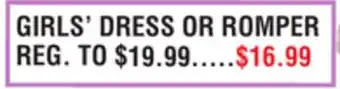 GIRLS' DRESS OR ROMPER Discount at Dunham's Sports