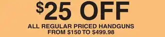 Dunham's Sports offers a wide collection of products, besides the HANDGUNS. Keep an eye on the weekly Dunham's Sports weekly ad to find the best offers and promotions. Besides HANDGUNS, you can also find the following offers: ALL REGULAR PRICED HANDGUNS, offer 2 & offer 3.