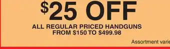 When is HANDGUNS on sale? or "I want to know if HANDGUNS will be discounted next week?" These are very common questions. Many people make a (shopping) list, with products that they are looking to buy next week. That’s why we always post next week’s flyers first. So you know exactly whether you need to wait a while before making a purchase or when to get it at the cheapest price. Keep an eye on our website to see if next week’s flyer has a deal on HANDGUNS.Will there be a promotion HANDGUNS next week?