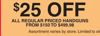 Dunham's Sports offers a wide collection of products, besides the HANDGUNS. Keep an eye on the weekly Dunham's Sports weekly ad to find the best offers and promotions. Besides HANDGUNS, you can also find the following offers: ALL REGULAR PRICED HANDGUNS, offer 2 & offer 3.