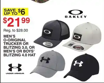 OAKLEY MEN'S O-ORIGINAL TRUCKER OR BLITZING 3.0, OR MEN'S OR BOYS' BLITZING 4.0 HAT deals and online offers from the current Dunham's Sports weekly ad