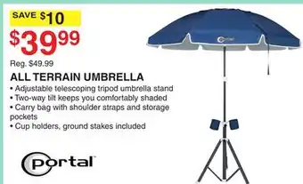 This offer is available in various stores, view all products to get the cheapest PORTAL ALL TERRAIN UMBRELLA. If you'd like to find out whether this product has a bigger discount in another store, check the category 'Sports'. You may also find these offers interesting: Galtech Market Umbrella Base, PORTAL HAMMOCK CHAIR & Brella Brite Umbrella Light.