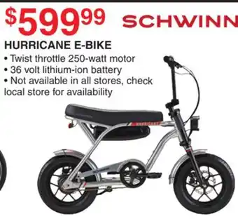 This offer is available in various stores, view all products to get the cheapest SCHWINN HURRICANE E-BIKE. If you'd like to find out whether this product has a bigger discount in another store, check the category 'Sports'. You may also find these offers interesting: Bike, B100 MINI BIKE & 325 CSX RECUMBENT BIKE.