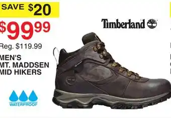 TIMBERLAND MEN'S MT. MADDSEN MID HIKERS offers and online specials, straight from the current Dunham's Sports ad