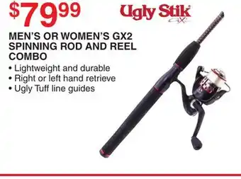 UGLY STIK MEN'S OR WOMEN'S GX2 SPINNING ROD AND REEL COMBO deal in the weekly ad of Dunham's Sports