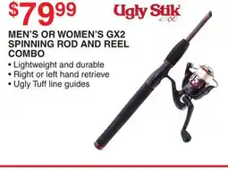 UGLY STIK MEN'S OR WOMEN'S GX2 SPINNING ROD AND REEL COMBO