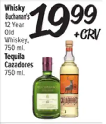 Current Whisky Buchanan's 12 Year Old Whiskey, 750 ml. Tequila Cazadores 750 ml deal at El Super Fresh from 24-12 until 1-01.