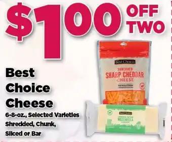 This offer is available in various stores, view all products to get the cheapest Best Choice Cheese. If you'd like to find out whether this product has a bigger discount in another store, check the category 'Grocery'. You may also find these offers interesting: Best Choice Cheese, 32 oz. Best Choice Cheese Spread & Best Choice Cheese Shreds or Chunks.