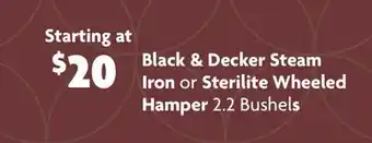 Black & Decker Steam Iron or Sterilite Wheeled Hamper