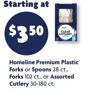 Homeline Premium Plastic Forks or Spoons 28 ct., Forks 102 ct., or Assorted Cutlery 30-180 ct deals and online offers from the current Family Dollar weekly ad