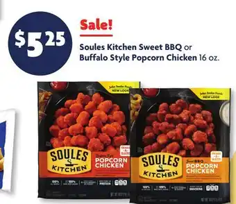 Soules Kitchen Sweet BBQ or Buffalo Style Popcorn Chicken offers and online specials, straight from the current Family Dollar ad