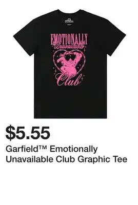 Current Garfield Emotionally Unavailable Club Graphic Tee deal at Five Below from 6-01 until 12-01.