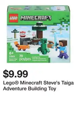 The Lego Minecraft Steve's Taiga Adventure Building Toy is now available with a discount at Five Below. On this page, you can find all information about the current prices, the conditions of the deal, and the duration of the deal. Don't forget to also check out comparable offers and deals for Lego Minecraft Steve's Taiga Adventure Building Toy, so you can always make the most cost-effective choice.The discount campaign for Lego Minecraft Steve's Taiga Adventure Building Toy runs from 10-03-2026 to 16-03-2026. Has the deal ended? No problem, you can always view other similar offers. You can also follow the product category to stay informed as soon as Lego Minecraft Steve's Taiga Adventure Building Toy is back on offer at Five Below. By comparing Lego Minecraft Steve's Taiga Adventure Building Toy offers, you can always ensure that you make your purchases at the lowest possible price. Keep checking our site regularly to see if Lego Minecraft Steve's Taiga Adventure Building Toy will soon be offered again with an attractive discount.