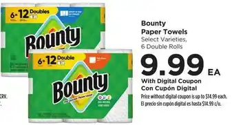 This offer is available in various stores, view all products to get the cheapest Bounty Paper Towels. If you'd like to find out whether this product has a bigger discount in another store, check the category 'Grocery'. You may also find these offers interesting: Bounty Paper Towels, Bounty Paper Towels & Bounty Paper Towels.