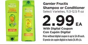 This offer is available in various stores, view all products to get the cheapest Garnier Fructis Shampoo or Conditioner. If you'd like to find out whether this product has a bigger discount in another store, check the category 'Grocery'. You may also find these offers interesting: Garnier Fructis Shampoo or Conditioner or Dial Body Wash, ANY Fructis shampoo or conditioner & ANY Fructis shampoo or conditioner 11.3-13 oz.