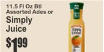 11.5 FL Oz Btl Assorted Ades or Simply Juice Discount at Almonte's Food Dynasty Marketplace
