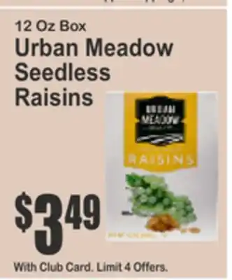 12 Oz Box Urban Meadow Seedless Raisins deal in the weekly ad of Almonte's Food Dynasty Marketplace