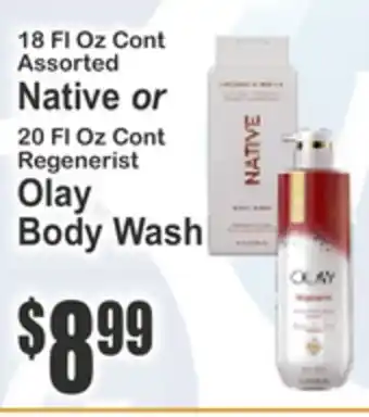 18 Fl Oz Cont Assorted Native or 20 Fl Oz Cont Regenerist Olay Body Wash deal in the weekly ad of Almonte's Food Dynasty Marketplace
