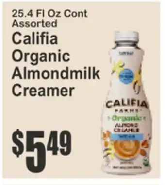 Current 25.4 Fl Oz Cont Assorted Califia Organic Almondmilk Creamer deal at Almonte's Food Dynasty Marketplace from 24-04 until 30-04.