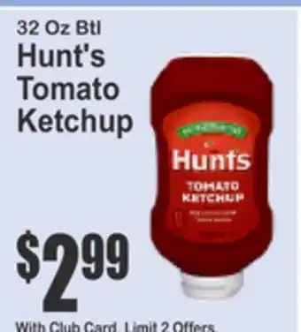 32 Oz Btl Hunt's Tomato Ketchup offers and online specials, straight from the current Almonte's Food Dynasty Marketplace ad