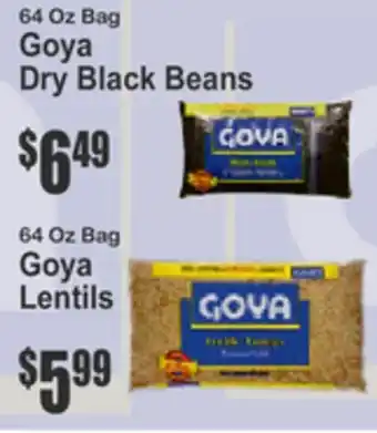 64 Oz Bag Goya Dry Black Beans, 64 Oz Bag Goya Lentils deal in the weekly ad of Almonte's Food Dynasty Marketplace