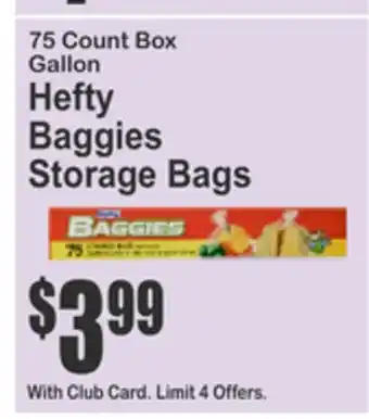 This offer is available in various stores, view all products to get the cheapest 75 Count Box Gallon Hefty Baggies Storage Bags. If you'd like to find out whether this product has a bigger discount in another store, check the category 'Grocery'. You may also find these offers interesting: 75 Count Box Gallon Hefty Baggies Storage Bags, 75 Count Box Gallon Hefty Baggies Storage Bags & BOAT COUNT Box Storage or Gallon Ziploc Bags.