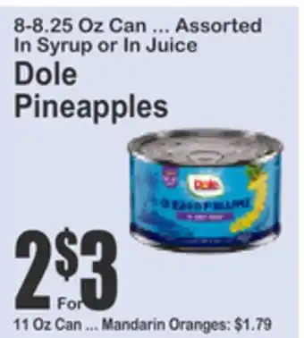 8-8.25 Oz Can ... Assorted In Syrup or In Juice Dole Pineapples Discount at Almonte's Food Dynasty Marketplace