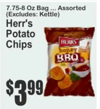 This offer is available in various stores, view all products to get the cheapest Herr's Potato Chips. If you'd like to find out whether this product has a bigger discount in another store, check the category 'Grocery'. You may also find these offers interesting: Herr's Potato Chips, Herr’s Potato Chips Party Size & Herr’s Potato Chips Family Size.