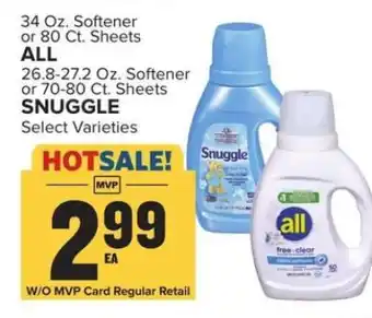 This offer is available in various stores, view all products to get the cheapest ALL or SNUGGLE. If you'd like to find out whether this product has a bigger discount in another store, check the category 'Grocery'. You may also find these offers interesting: All or Snuggle Laundry Care, Snuggle Fabric Softener & Snuggle Crystals Laundry Care.