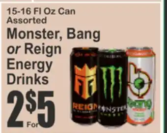 15-16 FL Oz Can Assorted Monster, Bang or Reign Energy Drinks offers and online specials, straight from the current Food Universe ad