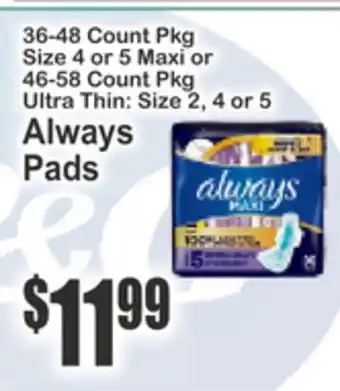 This offer is available in various stores, view all products to get the cheapest Always Pads. If you'd like to find out whether this product has a bigger discount in another store, check the category 'Grocery'. You may also find these offers interesting: Always Pads, Always Pads & Always Pads.
