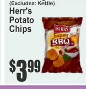 This offer is available in various stores, view all products to get the cheapest Herr's Potato Chips. If you'd like to find out whether this product has a bigger discount in another store, check the category 'Grocery'. You may also find these offers interesting: Herr's Regular Potato Chips, Herr's Potato Chips or Pretzels Family Size & Herr's Potato Chips or Pretzels Family Size.