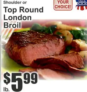 This offer is available in various stores, view all products to get the cheapest Shoulder or Top Round London Broil. If you'd like to find out whether this product has a bigger discount in another store, check the category 'Grocery'. You may also find these offers interesting: USDA Choice Beef Shoulder or Top Round London Broil, Top Round London Broil & TOP ROUND LONDON BROIL OR ROAST.