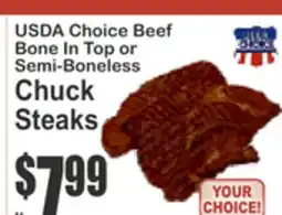 USDA Choice Beef Bone In Top or Semi-Boneless Chuck Steaks