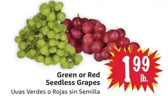 This offer is available in various stores, view all products to get the cheapest Green or Red Seedless Grapes. If you'd like to find out whether this product has a bigger discount in another store, check the category 'Grocery'. You may also find these offers interesting: Green or Red Seedless Grapes, Green or Red Seedless Grapes & Green or Red Seedless Grapes.