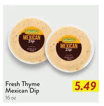 The price of Fresh Thyme Mexican Dip can be found at the top of the page, together with the dates during which the offer is available. You can also check the price in the current Fresh Thyme weekly ad or on the Fresh Thyme website. Promotional offers assure you of buying Fresh Thyme products at the lowest price.