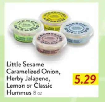 Little Sesame Caramelized Onion, Herby Jalapeno, Lemon or Classic Hummus offers and online specials, straight from the current Fresh Thyme ad