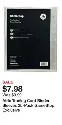 Now on specials at Game Stop: Atrix Trading Card Binder Sleeves 25-Pack GameStop Exclusive✅ Valid in the weekly ad from 5-01 to 11-01.