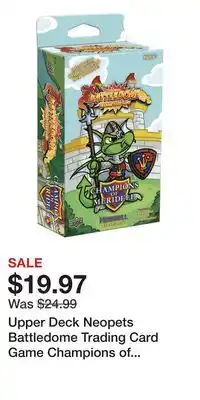 The price of Upper Deck Neopets Battledome Trading Card Game Champions of Meridell Starter Deck can be found at the top of the page, together with the dates during which the offer is available. You can also check the price in the current Game Stop weekly ad or on the Game Stop website. Promotional offers assure you of buying Game Stop products at the lowest price.