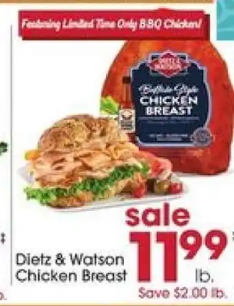 The Dietz & Watson Chicken Breast is available this week in the weekly ad of Giant Eagle, with an attractive discount. On this page, you’ll find all the information about current promotional prices, terms of the promotion, and special discounts. Browse through the weekly ad and check out other offers and promotions related to Dietz & Watson Chicken Breast to ensure you get the best deal.The deal for Dietz & Watson Chicken Breast is valid in week 17 and can be found in the current weekly ad. Has the deal expired? No worries, you can always check other interesting offers in the weekly ad. You can also follow the product category to be immediately informed when Dietz & Watson Chicken Breast is back in the weekly ad of Giant Eagle.