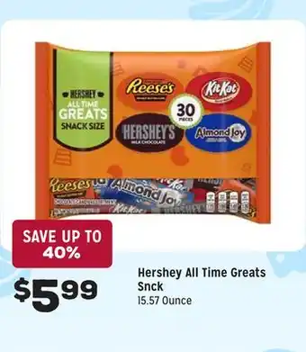 This offer is available in various stores, view all products to get the cheapest All Time Greats Snck. If you'd like to find out whether this product has a bigger discount in another store, check the category 'Grocery'. You may also find these offers interesting: Jolly Time popcorn, All Free & Clear & ALL Progresso soup.