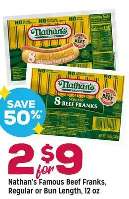 Nathan's Famous Beef Franks, Regular or Bun Length deals and online offers from the current Grocery Outlet weekly ad