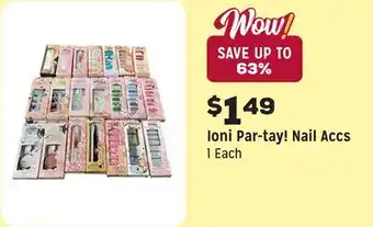 This Par-tay! Nail Accs is now on deal at Grocery Outlet. All information about current prices, promotional conditions, and durations can be found on this page. Also check out other comparable deals and promotions related to Par-tay! Nail Accs, so you can always make the most cost-effective choice.The duration of the Par-tay! Nail Accs deal is from 18-03-2026 to 24-03-2026. If the deal is no longer valid, you can look at other comparable offers. You can also follow the product category to stay informed as soon as Par-tay! Nail Accs is on deal again at Grocery Outlet. By comparing Par-tay! Nail Accs deals, you'll know whether it's wise to wait on a purchase because it might have been cheaper or might come up cheaper in a future deal. So keep an eye on our site to see if Par-tay! Nail Accs appears next week with a significant discount in the flyer.